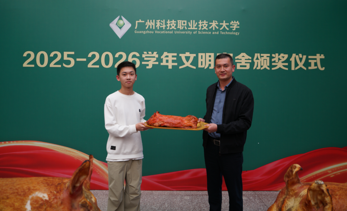 广科大新闻网讯 12月17日下午,广州科技职业技术大学在“一站式”学生服务大厅召开2025-2026学年第一学期校级“文明宿舍”表彰活动。本次活动旨在表彰先进,树立典范,进一步推进学生宿舍精神文明建设,营造安全、文明、和谐、温馨的住宿环境。学生处刘良处长、黄福祥、周子乙副处长,各学院宿舍管理负责老师及获奖宿舍代表参加了本次活动。活动由学生处事务科刘洁老师主持。学生处黄福祥副处长宣读2025-2026学年第一学期校级“文明宿舍”表彰决定学生处周子乙副处长为获奖宿舍代表逐一颁发荣誉证书学生处刘良处长为获奖宿舍代表颁发奖品烤乳猪获奖宿舍同学集体领取荣誉证书及烤猪肉获奖宿舍同学领取奖品烤猪肉活动最后,刘良处长做总结并对获奖同学提出希望。他首先向...