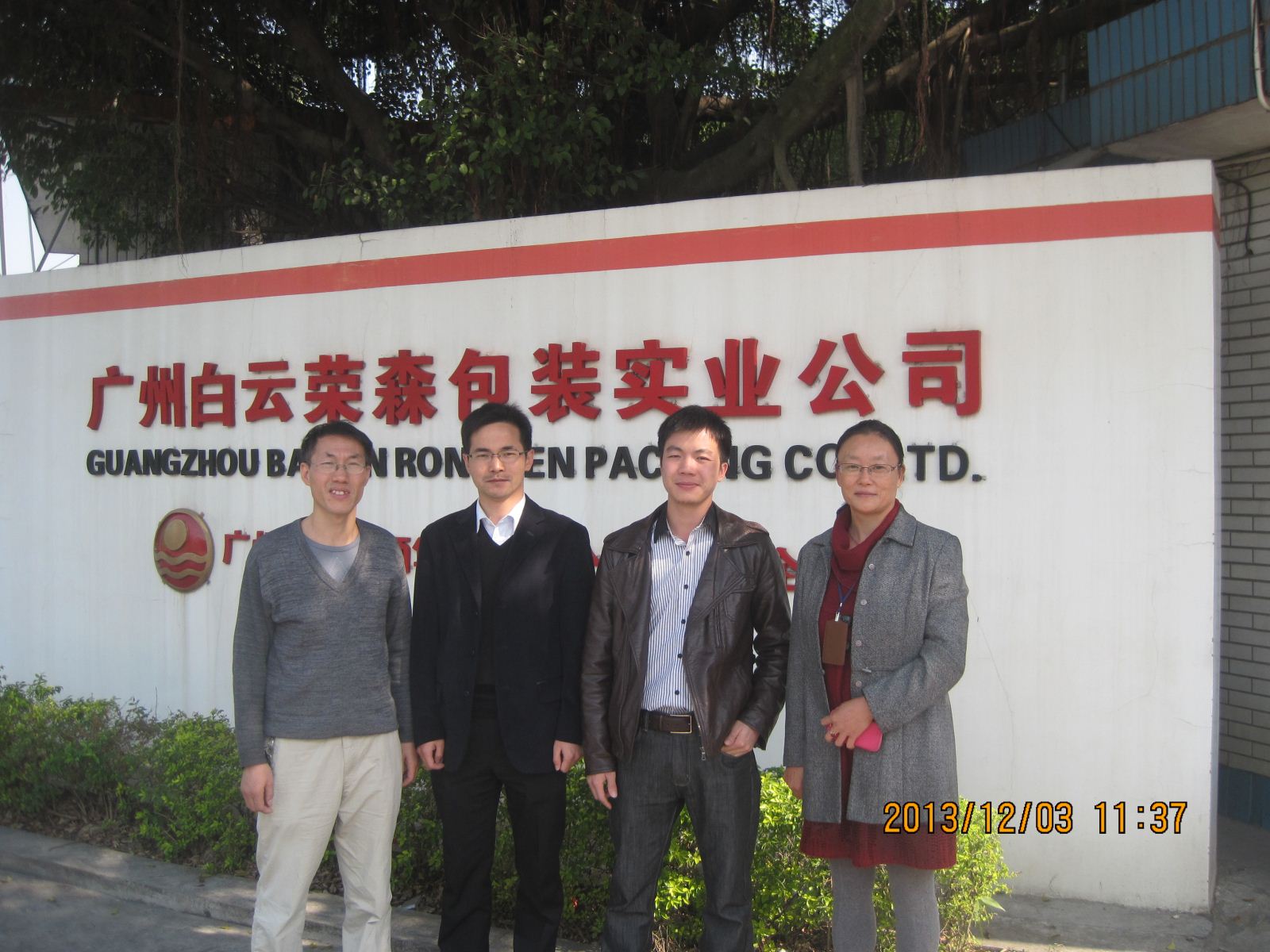 (图为:我系陈华副主任一行与胡经理合影) 2013年2月系陈华副主任、实习干事韦一文、唐耀存老师到广州白云荣森包装实业公司,拜访了人事部主管领导。与人事部胡经理一起交流,互谈学生在企业的学习与实习情况,胡经理给予每个同学中肯的评价与意见,表示11学生整体表现不错,并且承诺会给11学生一个很好的学习机会和技术培训指导。 (图为:我系师生与企业单位领导合影) 在行政领导的陪同下参观了印刷主要生产部门,对我们系老师对学生的指导给予了积极的肯定,希望彼此多些交流广州白云荣森包装实业公司提供更多优秀学生。我们也希望广州白云荣森包装实业公司能多给予学生更多的机会来发展自己,同时希望广州白云荣森包装实业公司...