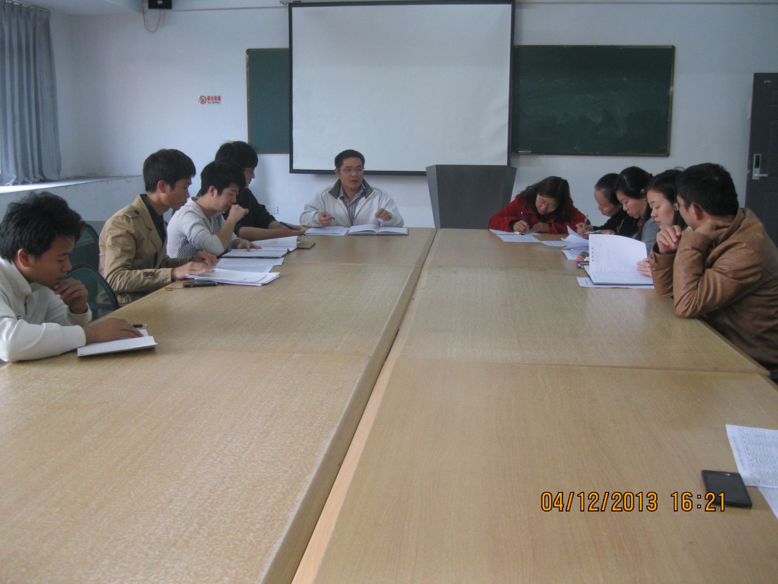 (本系讯)根据我系2013-2014学年度第一学期期中教学工作计划及系的实际情况,我系于12月4日下午在4509会议室召开了期中教学检查总结交流会。会议由副主任兰娅勋主持,全体教工参加了此次会议。 会议内容有如下 1、各室主任就本室期中教学检查的工作情况进行了总结发言,也将本室目前存在的问题作了一个说明并提出整改措施。 2、党支部书记就学生管理工作和党务工作作了总结,同时指出下一步工会工作的安排部署。 3、二级督导张艳梅老师作教学质量检查小组工作报告,总结了听课情况、教学材料检查情况和学生座谈情况,并提出了教学督导工作未来努力的方向和目标。 4、兰娅勋副主任就教学常规、教案检查、实训教学及系行政工作等作期中教学质...