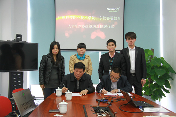(本系讯)12月3日上午,东软睿道教育信息技术有限公司与我系进行了软件开发专业人才培养协议签约及“教学实习基地”授牌仪式。出席人才培养协议签约及授牌仪式有就业处潘世华处长、我系兰娅勋副主以及系教师代表和企业代表。 洽谈合作前,由企业人员带领下参观了企业文化与服务产品展示区,了解了该企业的企业文化和东软集团发展趋势与服务项目。随后,双方就软件开发专业人才培养协议签约事项进行了详细洽谈;并举行了人才培养签约仪式和“广州科技职业技术学院教学实习基地”授牌仪式。 此次合作加强了校企合作之间的关系,更好地为企业培养需求的人才打下基础,达到了双方共赢的局面。 东...