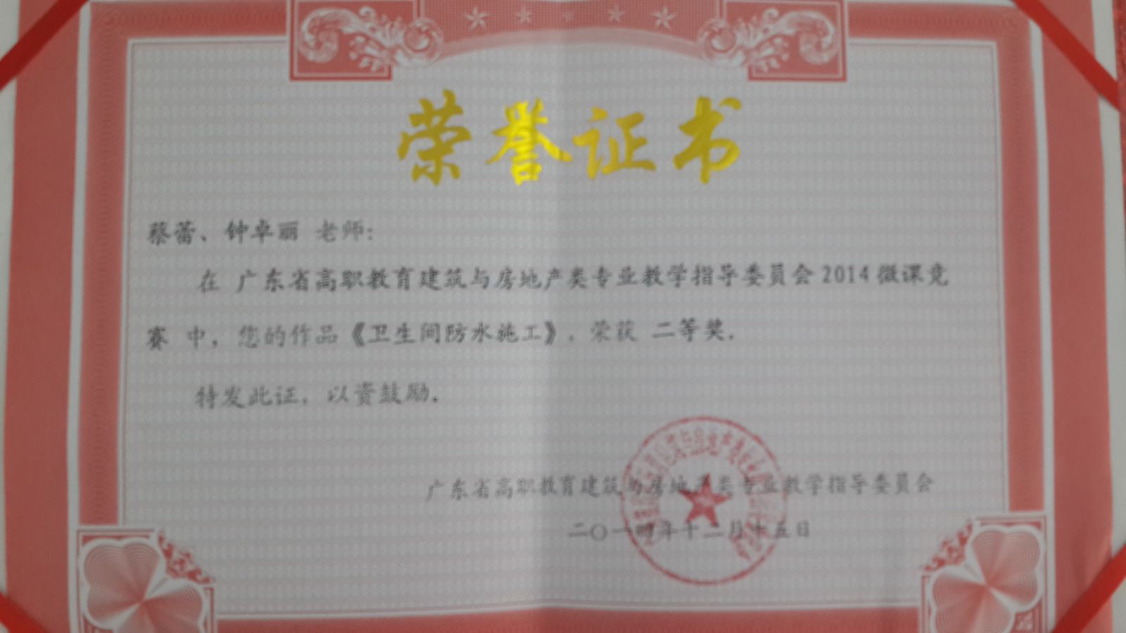 为提高广东省建筑与房地产类专业教师的教学水平,广东省高职教育建筑与房地产类专业教学指导委员会近期举办了2014年广东省高等职业院校建筑与房地产类专业微课教学竞赛。经过专家组评审、主任委员(副主任委员)审核等多个环节,广州科技职业技术学院艺术与传媒系钟卓丽教师的微课作品《卫生间防水施工》获得了二等奖。 (图为:钟卓丽教师获奖证书) 微课竞赛以视频为主要载体记录教师围绕某个知识点或技能点开展的简短、完整的教学活动,是一项提高教师信息化教学能力的重要赛事。广州科技职业技术学院教师能在激烈的竞赛中脱颖而出,展现了我院教师扎实的教学功底和较高的信息技术水平,同时此次竞赛促进了校际间的交流学习,达...