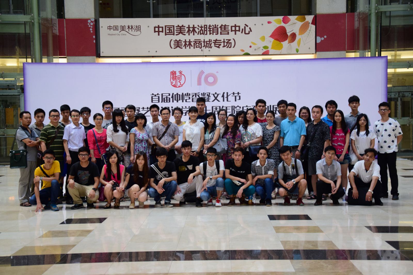 为做好2014年协同创新学生作品综合展的各项工作,5月28日下午1点半,尚华主任组织系部全体教师与各班学生代表前往广州美林国际饰品中心参观展览场地,并参观仲恺农业工程学院召开首届仲恺香凝文化节,从中借鉴好的地方。 到达展区后,石树勇召集各个教研室主任商讨每个教研室布展区域,并咨询学生作品筹备进展情况。随后就文化节开幕式和闭幕式的形式、师生的参与、作品展的宣传等问题进行了热烈讨论。 最后尚主任对各项筹备工作提出三点要求:一是要明确职责,配合支持,确保圆满;二是主题突出,内容健康;三是精心组织,隆重简朴,确保质量。 (图为:我系师生在展区门口合影)