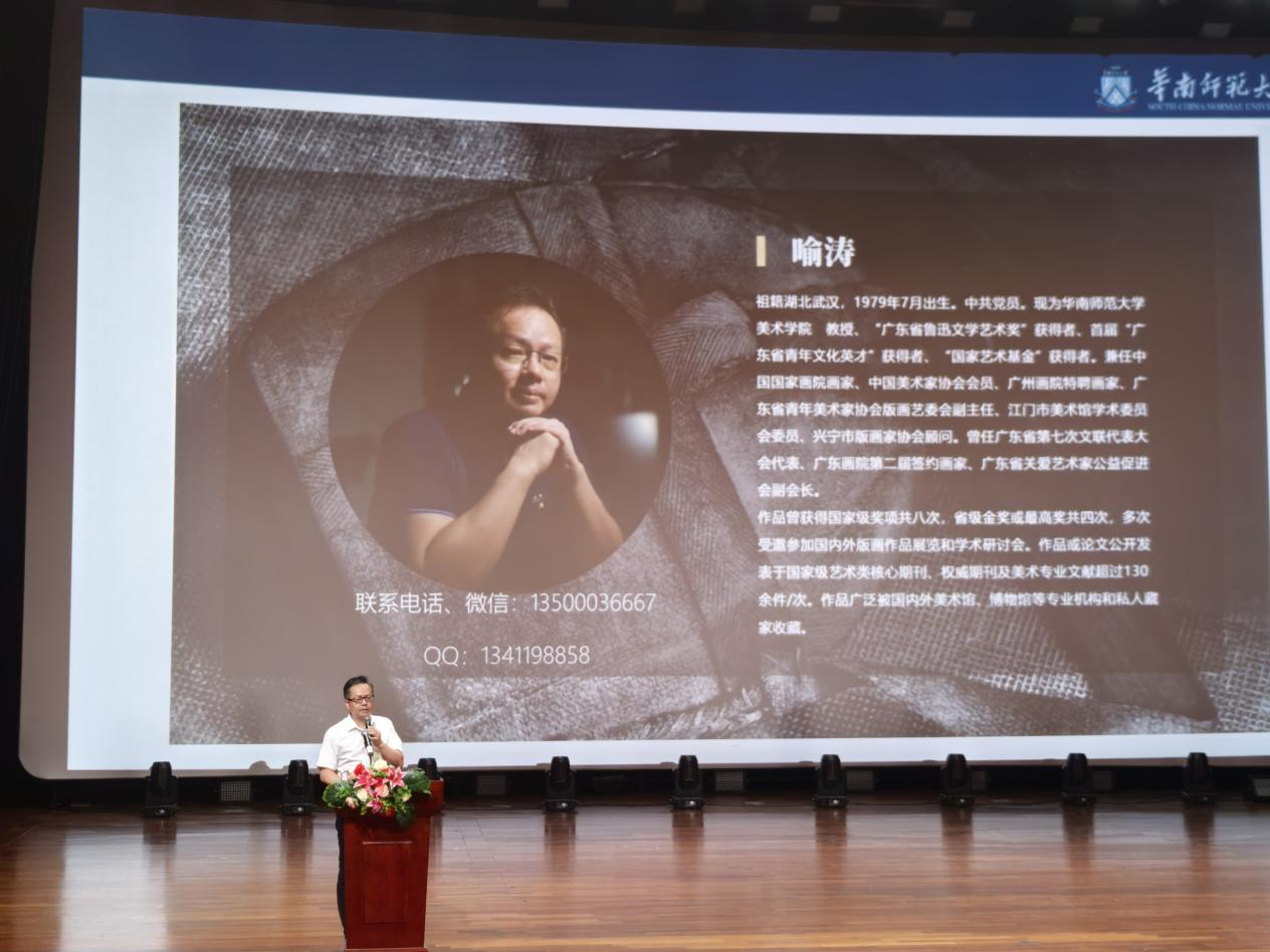 4月22日,由通识教育中心主办的名家讲坛顺利举行,华南师范大学美术学院喻涛教授应邀带来《中国雕版印刷技艺与现当代版画艺术》主题讲座。喻涛教授以深厚的学术积淀与丰富的创作实践,从版画艺术源流、中外版画发展、现当代版画创新等多个维度,系统梳理了中国雕版印刷从古老技艺走向现当代艺术的完整脉络,更在讲解中融入文化自信、通识教育、美育浸润等对于专业学习与青年成长的重要意义,为在场师生呈现了一场兼具历史深度、文化厚度、艺术温度与思想高度的精彩分享。讲座伊始,喻涛教授从版画的远古源头讲起,带领大家追溯旧石器时代洞穴岩画、新石器时期印纹彩陶与树皮布印花、殷商甲骨文、商周青铜器铭文与印章,再到春秋战国凸版印花、秦汉盖印封泥、模印砖瓦与拓...