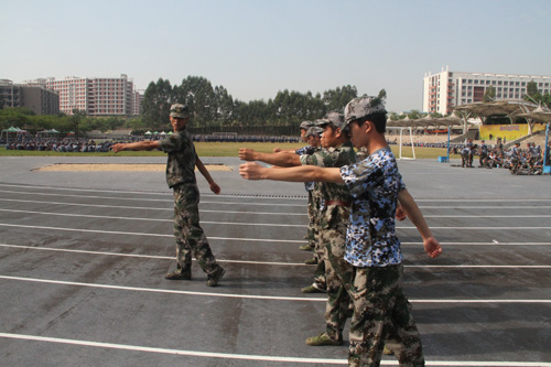 (本院讯)9月17日,伴着徐徐的微风,和睦的阳光,2012级新生迎来了他们第三天的军训生活。他们在教官的指令下完成着整齐划一的动作:向右看齐、向前看、稍息、立正……他们身上穿着着象征着军人精神的迷彩服,身姿挺拔,神采奕奕;他们眼神中透露着一种信念、一份坚定。每当有教官或老师、师兄师姐经过,“迷彩服们”就会用洪亮的声音向他们问好,从这阵阵问好声中,我更听到了他们的军人精神!