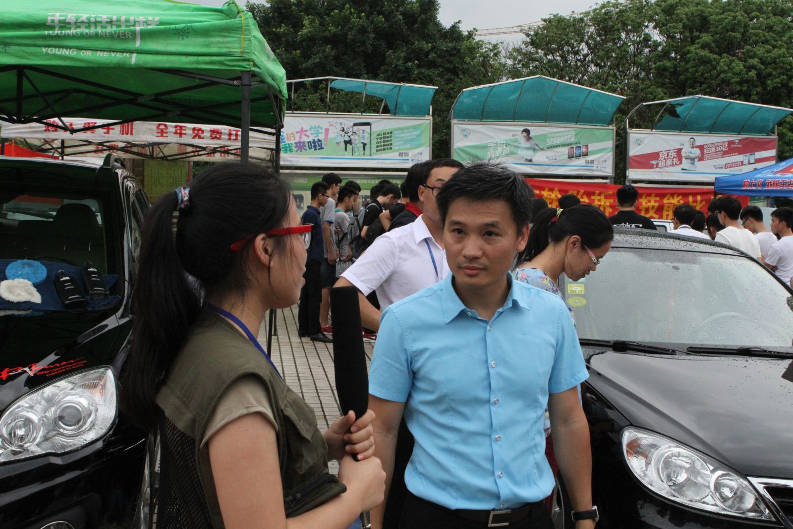 (图为学院党委书记谢练高、学院副院长李莹参观文化节比赛现场)