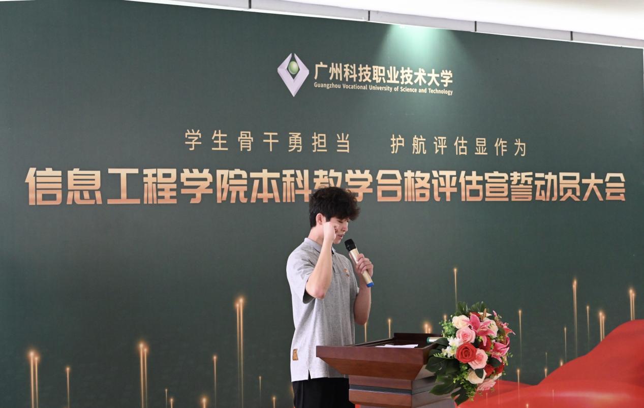 (广科大新闻网讯)4月10日下午,我校信息工程学院在图书馆架空层召开本科教学合格评估学生骨干宣誓动员大会。学校副校长董汝萍、信息工程学院院长殷瑞祥、党总支书记肖琳、党总支副书记李唐玉以及教师代表、全体辅导员、班干部、学生会成员、学生党员代表参加会议,会议由肖琳书记主持。本次大会旨在统一思想、凝聚共识,动员全院师生以最佳状态迎接教育部本科教学合格评估,为学校高质量发展注入强劲动能。