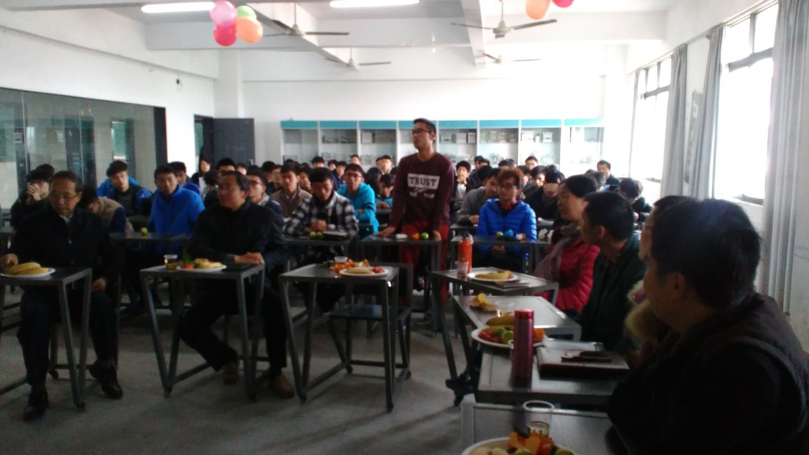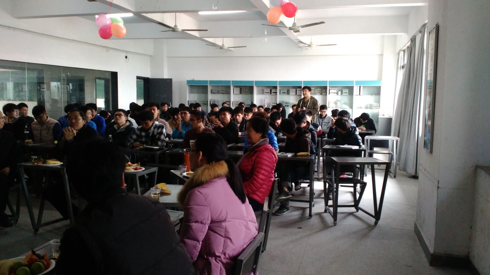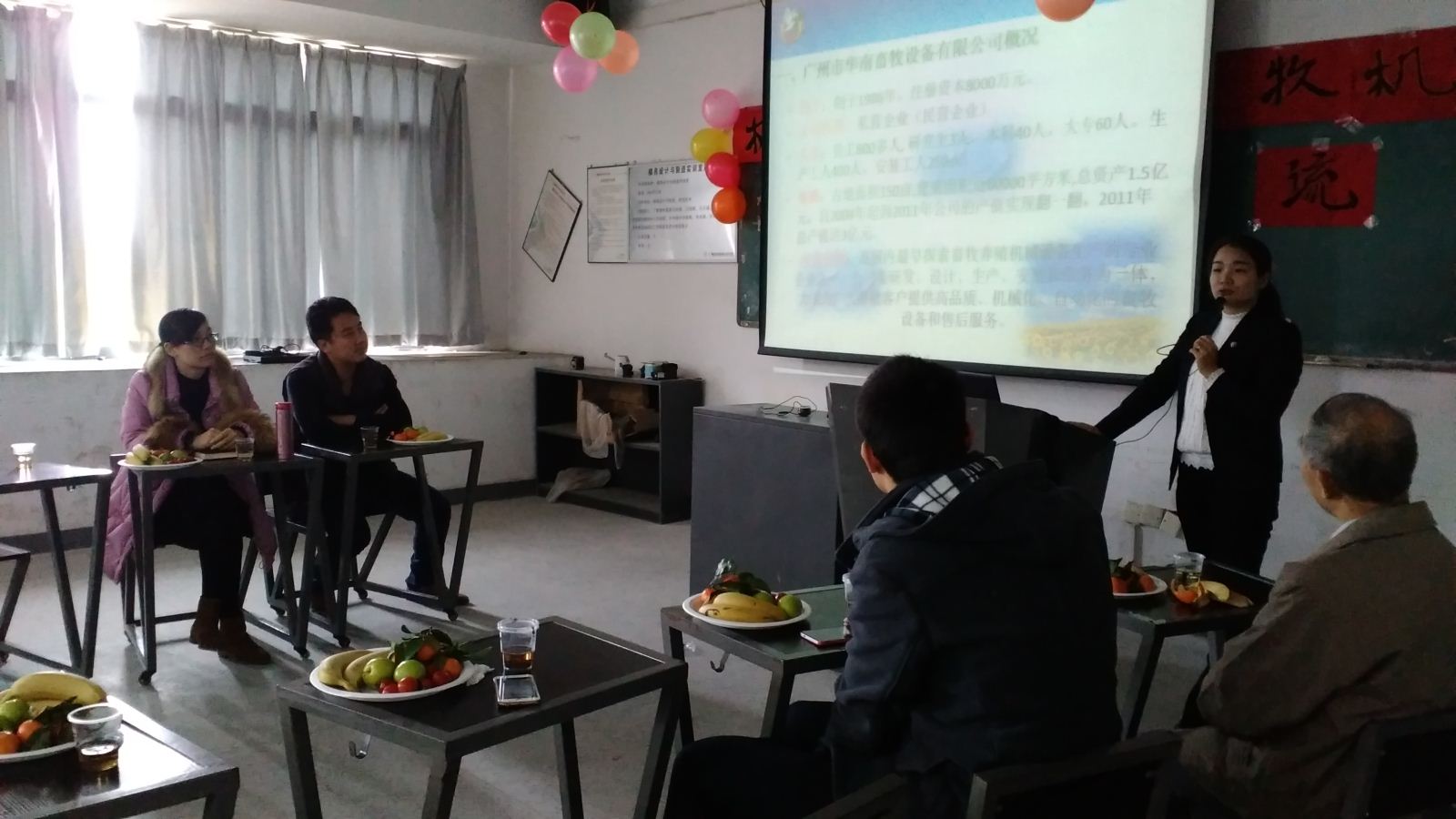 ,机械系与华南畜牧设备有限公司开展元旦交流会,参与会议的人有华南厂人事部经理张丽敏、技术部经理张经理,我系李昌权主任、高立义主任、邓汝荣等老师,及我系2014级学生,包括模具设计与制造、机电一体化、数控技术各个专业。2015年9月起,我系与华南畜牧设备有限公司正式开始深度校企合作与交流,此次会议前,我系已与该厂进行了篮球友谊赛。